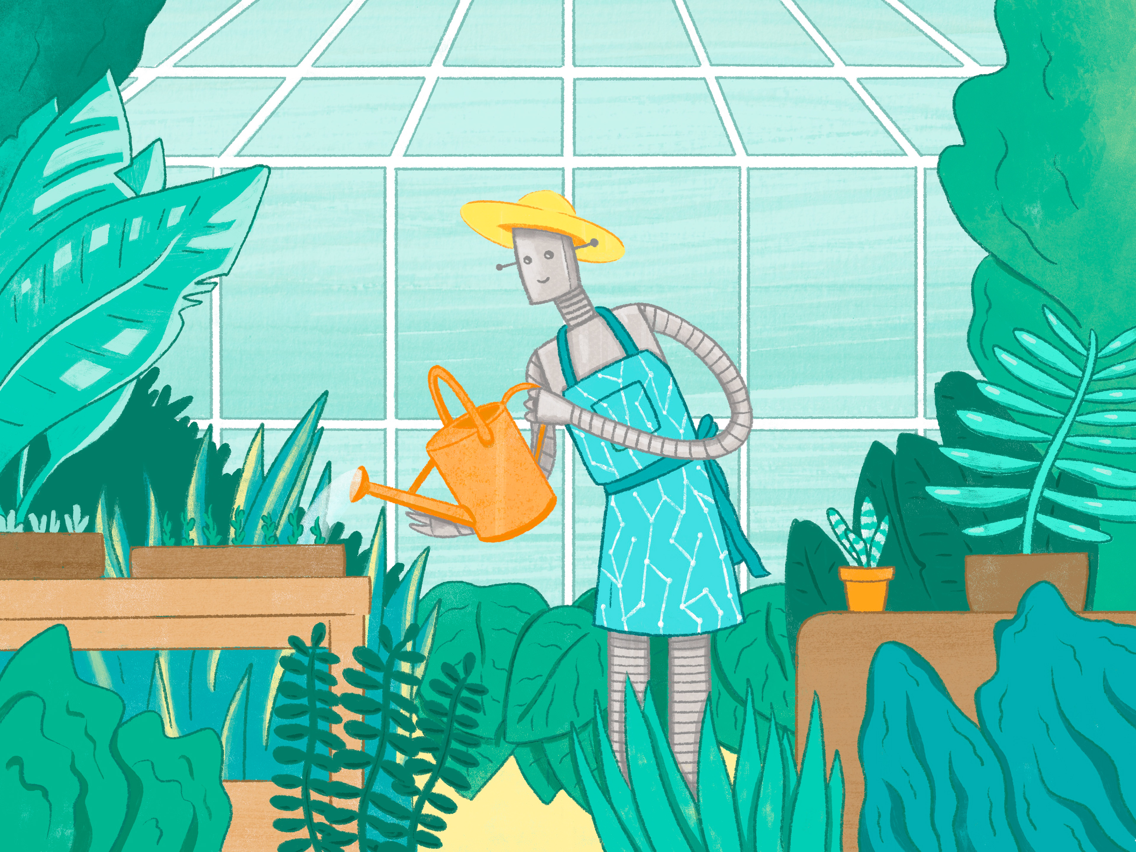 Illustration for an article on the use of AI in gardening, comissioned by Dave Hodson Gardens.